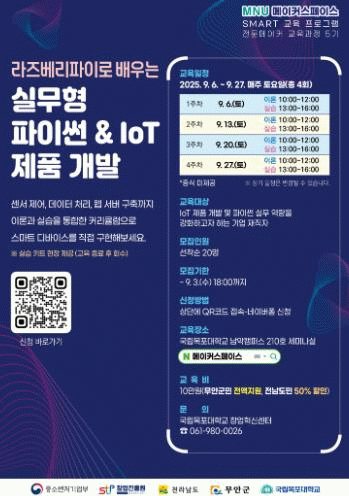 이혜향 미래성장과장은 “지역민들이 IoT와 파이썬을 실무에 접목할 역량을 기르는 좋은 기회”라며, “앞으로도 미래 산업에 발맞춰 나갈 수 있도록 맞춤형 교육을 제공하겠다”고 밝혔다.