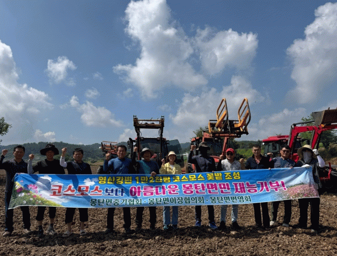 또한 몽탄면번영회(회장 김성비)는 사창리 열차카페 유휴지에 코스모스를 식재했으며, 여성 이장들이 간식을 마련하고 여러 기관·단체도 응원의 뜻을 더했다.