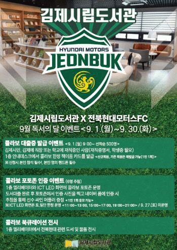 도서관 1층 로비와 ICT 화면에서 전북현대 마스코트와 전북현대 선수 포토존이 마련되며, 마스코트 포토존은 9월 한 달간 상시로 운영하고 선수 포토존의 경우 9월 중 주말에만 운영된다.