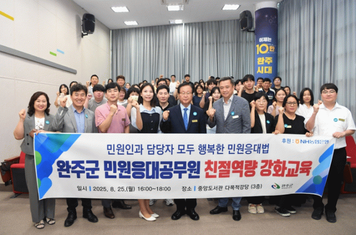 유희태 완주군수는 교육에 앞서 민원 담당자들과 간담회를 갖고 애로사항을 청취하며 다양한 의견을 나눴다. 유 군수는 “직원들이 한결같은 친절을 실천해 민원 만족도를 높이고, 민원인과 소통하는 행복한 완주군을 함께 만들어 나가자”고 강조했다.