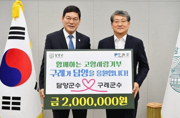 구례군과 담양군은 기부문화 확산과 제도의 성공적인 정착을 위해 지난 2023년과 2024년에도 상호 기부를 추진했으며, 지속적인 교류와 업무연찬을 통한 우호 증진으로 지자체간 상호협력의 수범사례로 평가받고 있다.