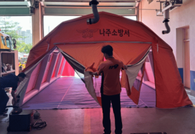 특히 이번에 도입한 에어텐트는 기존 원단과 달리 하이파론(Hypalon) 소재를 사용해 우수한 인장강도를 자랑하며, 설치 시간이 2분 이내로 단축되는 등 현장 신속성이 크게 향상됐다. 또한 모든 구간을 분리할 수 있는 구조로 제작돼 부분 수리가 용이, 유지·관리 효율성도 높아졌다.