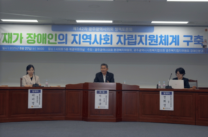 서용규 의원은 “광주는 이미 통합돌봄 및 최중증 발달장애인 24시간 돌봄체계와 같은 지원사업 등이 전국 최초의 혁신 사례를 만들어 왔다”며, “이번 토론회를 계기로 재가 장애인도 지역사회에서 당당한 시민으로 살아갈 수 있도록 법과 제도를 넘어선 실질적 지원체계를 구축해야 한다”고 밝혔다.
