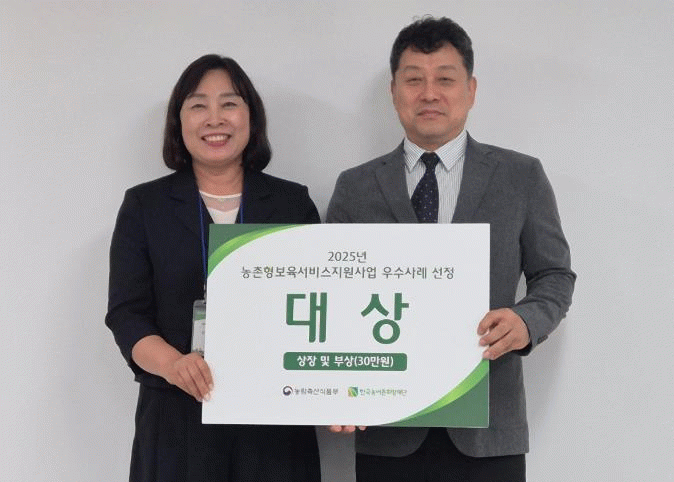 전국의 농촌형 보육서비스 지원사업을 운영중인 251개소 중 우수기관 6개소 선정에서 대상을 수상하는 최고의 영예를 얻었다.
