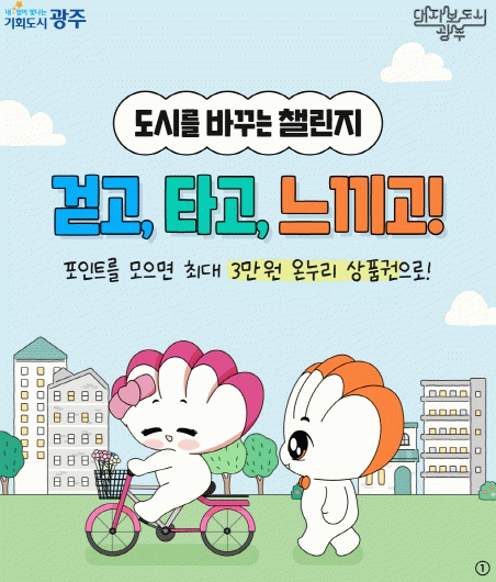 오는 9월부터 11월까지 시범운영하는 ‘시민참여수당’ 참여도 눈길을 끈다. 이 사업은 지속가능한 대·자·보(대중교통·자전거·보행 중심) 도시 구현을 위한 것으로, 모바일 애플리케이션 ‘워크온(Walk On)’을 통한 일상생활 속 실천활동에 최대 3만포인트의 보상이 주어진다. 광주시는 시범사업 참여자 2000명을 모집하고 있으며, 9월부터 본격적인 운영에 들어간다.