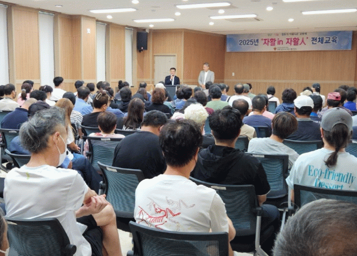 ‘자활in 자활人’ 전체교육은 자활근로사업 참여자들의 자활 의지를 키우고 창의적이고 진취적 사고를 통해 사회적응훈련 향상에 도움을 주고자 인문학 및 소양교육 으로 구성해 진행하고 있다.