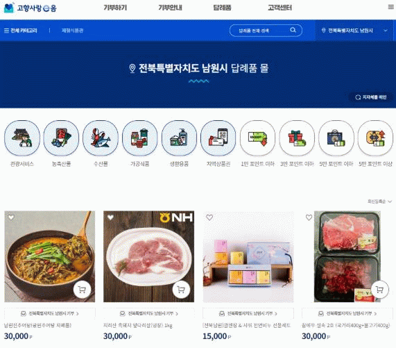 최경식 남원시장은 “남원에 기부해 주신 분들 모두를 만족시킬 수 있는 최상의 답례품을 제공해 드리기 위해 최선을 다하고 있으며, 앞으로도 기부자 중심의 답례품을 적극 발굴해 나가겠다”고 전했다.