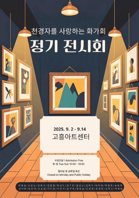 이번 전시는 9월 2일부터 14일까지 고흥아트센터 전시실에서 열리며, 회원 22명이 참여해 유화, 수채화, 한국화, 아크릴, 혼합매체 등 다양한 작품을 선보인다.