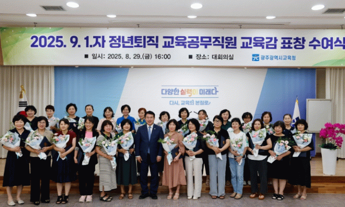 이번 표창 대상은 9월 1일자 정년퇴직 교육공무직원 85명 중 5년 이상 공립학교와 기관에서 근무하며 광주교육 발전에 기여한 52명이다.