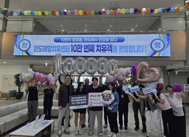 군은 완도해양치유센터 치유객 10만 명 달성 기념 환영 이벤트를 시작으로 10만 보 맨발 걷기 챌린지, 해양치유 건강 릴레이, 10만 축하 포토존 SNS 인증 이벤트 등을 9월 30일까지 진행한다.