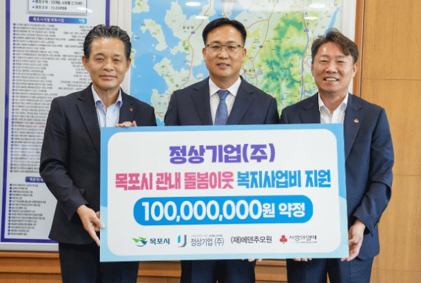 정상기업(주)은 토목·건설업 대표기업으로, 2008년부터 광주·전남 사회복지공동모금회에 매년 기부하며 꾸준히 사회공헌 활동을 이어오고 있다.