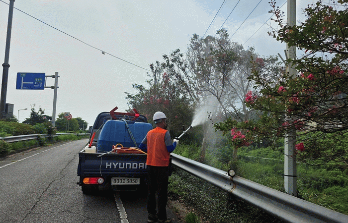 시는 도시녹지관리원 6명과 방제장비 및 급수차량을 투입해 친환경 약제를 사용한 고압 살포 방식으로 작업을 진행해 인체와 환경에 미치는 영향을 최소화했다.