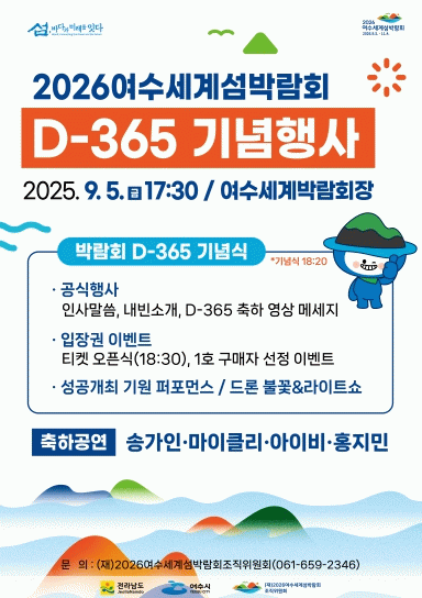 한편, 2026여수세계섬박람회는 ‘섬, 바다와 미래를 잇다.’를 주제로 2026년 9월 5일부터 11월 4일까지 두달 간 여수 돌산 진모지구, 금오도, 개도, 여수세계박람회장 일원에서 펼쳐 진다.
