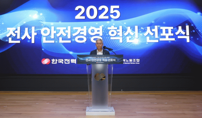 한전은 9월 1일 나주 본사에서 임직원과 전국 사업소장이 참석한 가운데 ‘중대재해 근절 원년 달성’을 위한 안전경영 혁신 선포식을 열었다. 이날 선포식에서 ▲조직‧인력 등 가용자원 집중 ▲안전점검 강화 및 업무 효율화 ▲협력사 안전관리 제도 혁신 ▲용역 안전관리체계 전면 환류 ▲유해‧위험 요인 제거 및 공법 전환 ▲AI 기반 스마트 기술 확대 등 6개 분야 63개 핵심과제를 발표하면서 실천 의지를 다졌다.