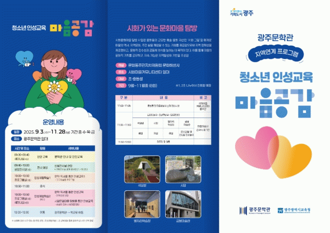 특히 광주문학관의 전시 콘텐츠를 기반으로 한 해설형 교육은 학생들에게 지역 문학사의 흐름을 쉽고 생생하게 이해할 수 있도록 돕는다. 또 교구재를 활용한 체험형 수업을 통해 문학적 상상력을 확장하고, 문학작품 속 주제와 가치를 탐구하는 과정에서 타인과 소통하고 협력하는 능력을 키울 수 있을 것으로 기대된다.