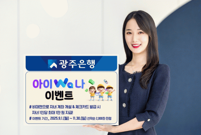 광주은행 송석현 디지털금융센터장은 “자녀 이름으로 계좌를 개설하는 것은 가족에게 받는 용돈을 스스로 관리하며 올바른 금융 습관을 키우는 소중한 첫걸음이 될 것”이라며, “앞으로도 광주은행은 미래 세대를 위한 맞춤형 서비스와 혜택을 지속적으로 확대해 나가겠다”고 말했다.