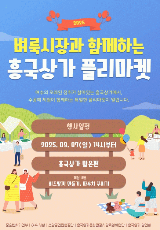 여수시 관계자는 “이번 플리마켓은 소상공인의 판로 확대와 시민 참여형 문화행사가 결합된 자리”라며 “흥국상가 활성화와 지역경제 회복에 도움이 될 수 있도록 시민과 관광객의 많은 관심과 참여를 부탁드린다”고 말했다.