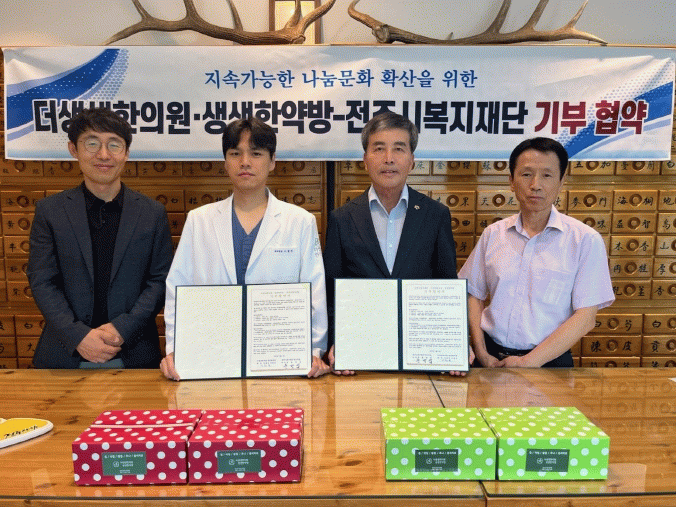 윤방섭 전주시복지재단 이사장은 “이번 협약은 단순한 후원을 넘어, 우리 사회를 건강하게 만드는 중요한 기반이 될 것”이라며 “더생생한의원과 생생한약방의 나눔에 깊이 감사드리며, 기부해주신 물품은 꼭 필요한 이웃들에게 정성껏 전달하겠다”고 말했다.