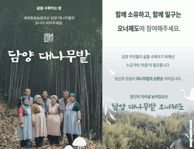 천년의 역사를 지닌 담양 대나무밭은 예로부터 살아있는 금을 캐는 생금밭이라 불리며 지역민들의 생계를 책임져 왔으며, 생태적 가치와 독창적 경관 등이 높이 인정받아 2020년 세계중요농업유산으로 지정됐다.