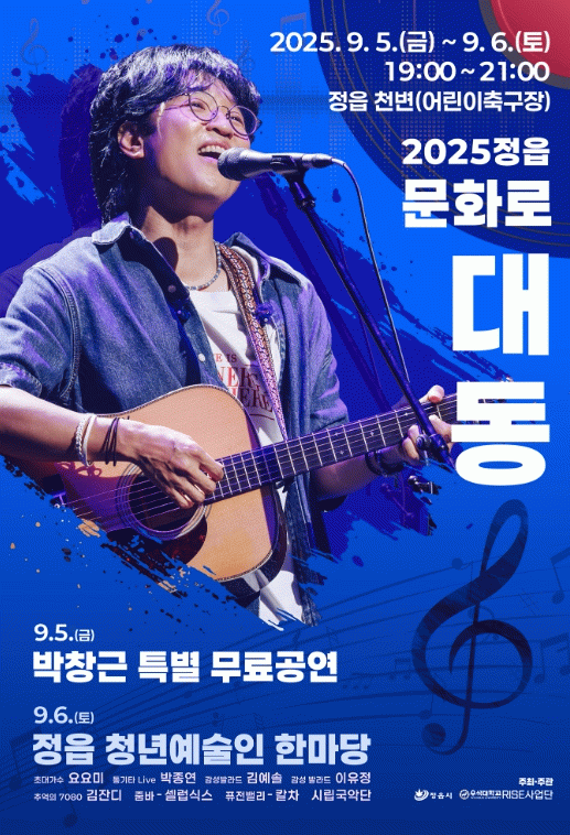 둘째 날인 6일에는 정읍시립국악단의 공연을 시작으로 지역 청년 예술인 6팀이 전통과 현대를 아우르는 무대를 선보인다.