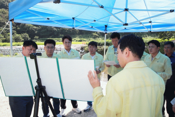 수해 피해 현장을 주의 깊게 살펴본 위원들은 특별재난지역으로 선포된 만큼 사유시설 재난지원금의 신속 집행과 장복천 등 공공시설 신속 추진으로 재난지역 복구에 만전을 기하여 줄 것을 요청했다.