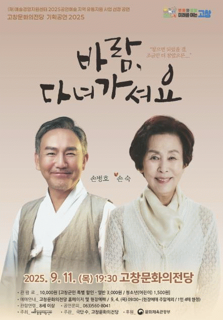 이번 공연은 (재)예술경영지원센터 2025 공연예술 지역 유통지원 사업 선정 공연으로 예술경영지원센터가 주최하고 극단 수와 고창문화의전당이 주관한다.