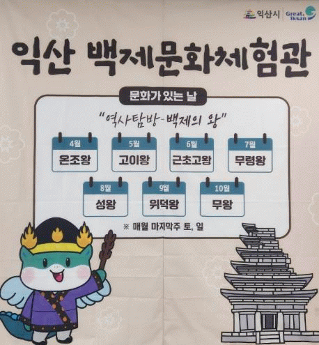 프로그램은 무료로 진행되며, 더욱 자세한 내용은 익산 백제문화체험관 사회관계망서비스(SNS) 또는 전화로 문의하면 된다.