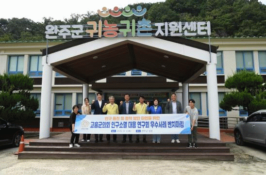 연구회 대표 박경석 의원은 “완주군의 정책 사례는 귀농·귀촌 정착 지원과 지역 농업 활성화를 통해 인구 유입을 유도한 점에서 매우 주목할 만한 점”이라며, “이번 벤치마킹을 토대로 고흥군 실정에 맞는 정책을 도입하고, 인구소멸 대응을 위한 연구 활동을 지속적으로 이어가겠다”고 말했다.