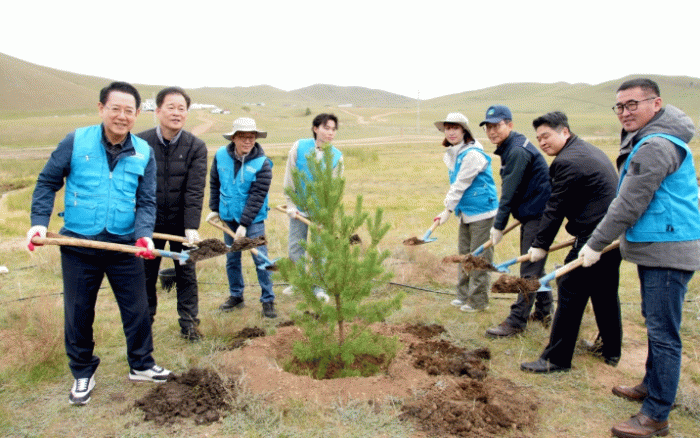 이들은 몽골 현지의 고온 건조한 기후와 척박한 토양에서도 잘 자라는 시베리아 낙엽송, 비술나무 등 현지에서 생산된 3년생 묘목 1천 그루를 심었다.