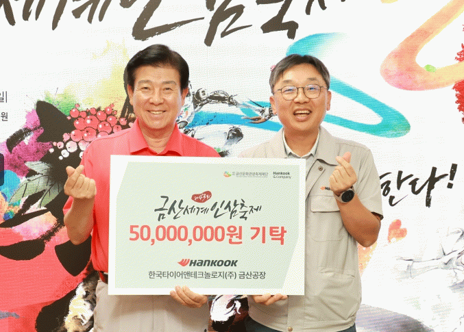 박범인 금산군수는 “한국타이어앤테크놀로지(주) 금산공장의 상생 협력에 깊이 감사드린다”며 “제43회 금산세계인삼축제가 국내를 넘어 세계인과 함께하는 글로벌 축제로 성장할 수 있도록 최선을 다하겠다”고 말했다.