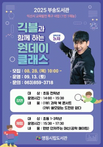 이번 프로그램은 익산시 교육발전특구 사업의 일환인 '익산형 1인 1재능–과학인재' 사업으로 마련됐으며, 인기 과학 유튜브 채널 '긱블'의 이수용(수드래곤)이 강사로 나선다.