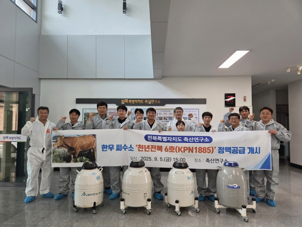 전북도 축산연구소는 지난 5일 ‘천년전북 6호(KPN1885)’정액 3천여 개를 생산해 지역축협을 통해 공급했다. 공급 대상은 일정 규모 이상의 고능력 한우를 보유한 농가로, 각 지역축협을 통해 순차적으로 전달된다.