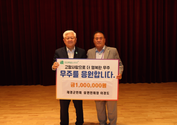 이경도 회장은 “무주의 자랑이자 출향인들의 긍지인 반딧불축제 현장에서 고향사랑 기부금을 기탁하게 돼 기쁘다”라며 “작은 정성이지만 고향 무주발전과 군민 행복에 보탬이 되길 바란다”라고 전했다.