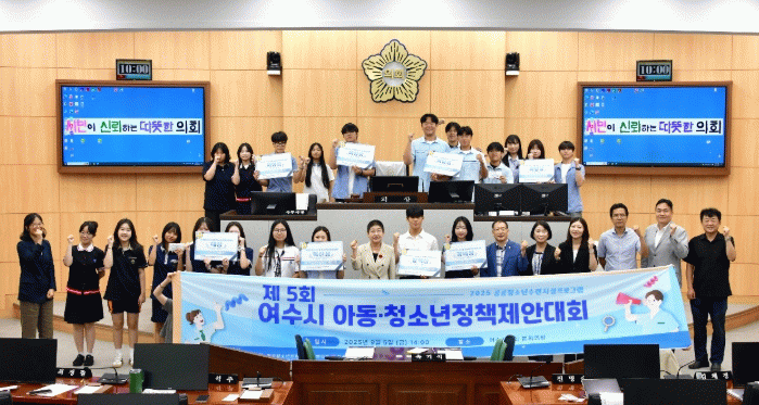 아동·청소년 정책 제안 대회는 청소년들이 여수시의 예산과 정책에 대해 의견과 아이디어를 직접 건의·제안하는 대회로 지역 청소년의 정책 참여 활성화를 목적으로 매년 열리고 있다.