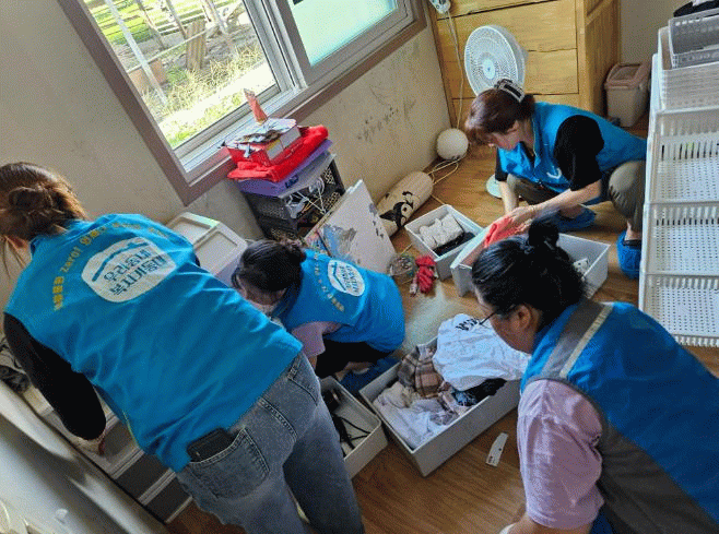 또한 함평지역자활센터의 협조로 이동세탁 차량을 지원받아 현장에서 직접 이불과 의류를 세탁해 위생적이고 쾌적한 환경을 마련했다.