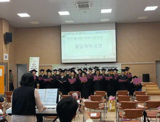 행사는 활동 영상 시청을 시작으로 마마학당 어머니들이 직접 준비한 ‘고향의 봄’과‘몽탄의 찬가’ 합창공연, 졸업장 및 상장 수여, 가족 편지 낭독 순으로 진행됐다.