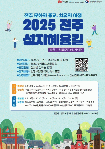 한편 ‘전주 성지혜윰길’ 프로그램은 문화체육관광부 소관 서부 내륙권 관광 진흥 사업의 일환으로 추진되며, 올해에 이어 내년에도 운영될 예정이다.