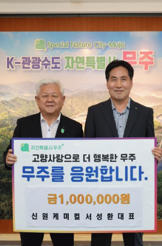 신원케미칼은 19년째 운영되고 있는 산업체 폐수처리 약품 취급 회사로, 무주군을 포함해 전북특별자치도 13개 시군에 고향사랑기부금을 기탁하는 등 지역사회에 귀감이 되고 있다.