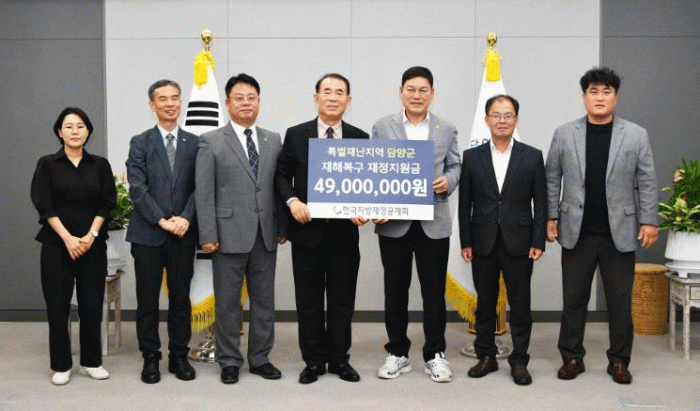 한국지방재정공제회 정송학 상임감사와 임직원이 담양군청을 방문해 재정지원금을 전달했으며, 정 상임감사는 “담양군민들에게 위로의 뜻을 전한다”라며, “앞으로도 재정공제회의 다양한 사업이 담양군에 도움이 될 수 있도록 최선을 다하겠다”고 말했다.