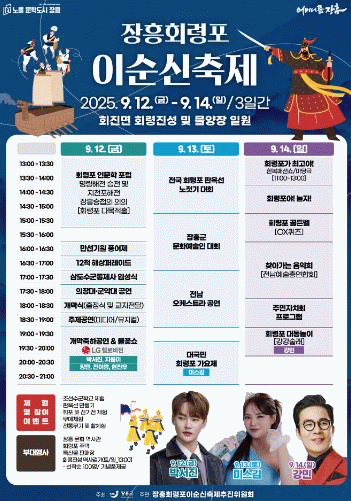 마지막날인 14일에는 전통과 현대가 어우러진 장흥 대동놀이 등의 프로그램으로 축제의 대미를 장식하며, 군민과 관광객이 함께 어울리는 ‘화합의 장’이 펼쳐진다.