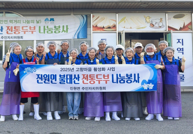 이번 활동은 올해 ‘고향마을 공동체 활성화사업’의 일환으로 마련됐다. 진원면 주민자치위는 직접 만든 두부와 김치를 마을회관에 전달하며 따뜻한 정을 나누고 있다. 마을 순회 노래교실도 열어 화합과 친목을 다진다.