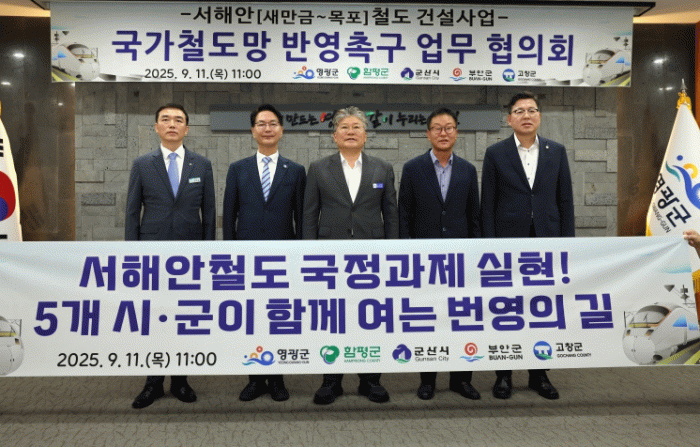 5개 시군은 11일 오전 11 영광군청에서 ‘서해안철도 국정과제 실현을 위한 5개 시군 협의회’를 개최하고, 서해안철도의 국가철도망 구축계획 반영과 건설 실현을 위한 공동 대응에 나서기로 했다.