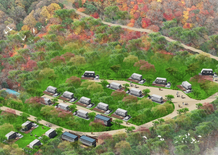 약 4800㎡ 면적에 길이 7m 크기의 카라반 21대가 들어서며, 카라반 사이트마다 주차 공간과 테이블도 마련된다.