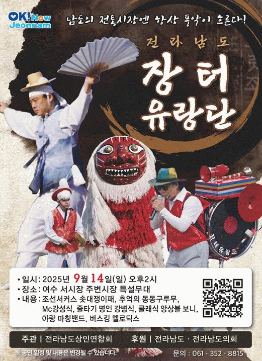 여수시 관계자는 “이번 공연이 시장을 찾는 시민과 관광객들에게 전남의 특색 있는 공연을 선보이고 전통시장의 활기를 되찾는 계기가 되길 바란다”며 “많은 관심과 참여를 부탁드린다”고 전했다.