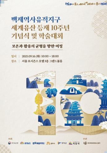 익산시는 오는 16일 서울 포시즌스 호텔에서 '백제역사유적지구 세계유산 등재 10주년 기념식 및 학술대회'를 개최한다고 12일 밝혔다.