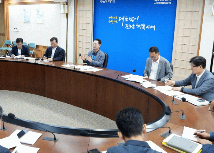 김영록 지사는 이날 이재명 대통령 취임 100일 기자회견 관련 실국장 현안회의를 주재, “기자회견을 통해 이재명 대통령의 재생에너지 산업 활성화에 대한 강한 의지를 재확인할 수 있었다”며 “민선 7·8기 전남이 준비해 온 에너지 정책이 본격적으로 탄력받을 수 있게 됐다”고 강조했다.