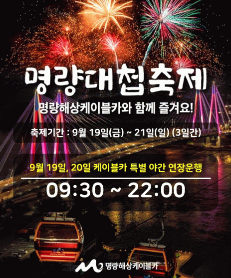 명량해상케이블카는 행사 일정에 맞추어 축제 기간인 19일, 20일 양일간 운행 시간을 오후 10시까지 연장 운영하며, 낮에 케이블카를 방문한 고객들에게는 행사장에서 햇빛을 가릴 수 있는 휴대용 썬캡을 무상으로 제공한다.