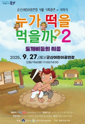 국악극 '누가 떡을 먹을까? 2 – 도깨비들의 씨름'사전예약은 9월 17일 오전 10시부터 티켓링크를 통해 지정좌석제로 진행되며, 1인당 최대 4매까지 예약 가능하다.