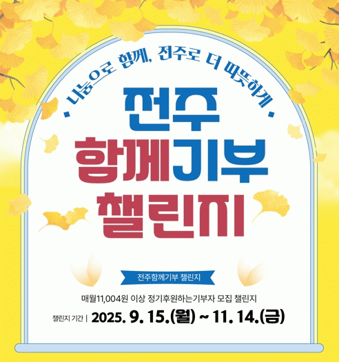 ‘전주함께기부 챌린지’는 전주시민이 함께 어려움에 처한 이웃의 위기 극복을 돕고 다시 일어설 수 있도록 지원하기 위한 것으로, 매월 1만1004원 이상 정기기부를 약정하는 기부천사를 발굴하는 캠페인이다.