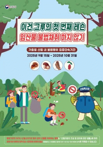 이번 단속은 임산물 불법 굴·채취, 무허가 벌채, 불법 산지 전용, 산림 내 취사 행위 등을 주요 대상으로 한다.